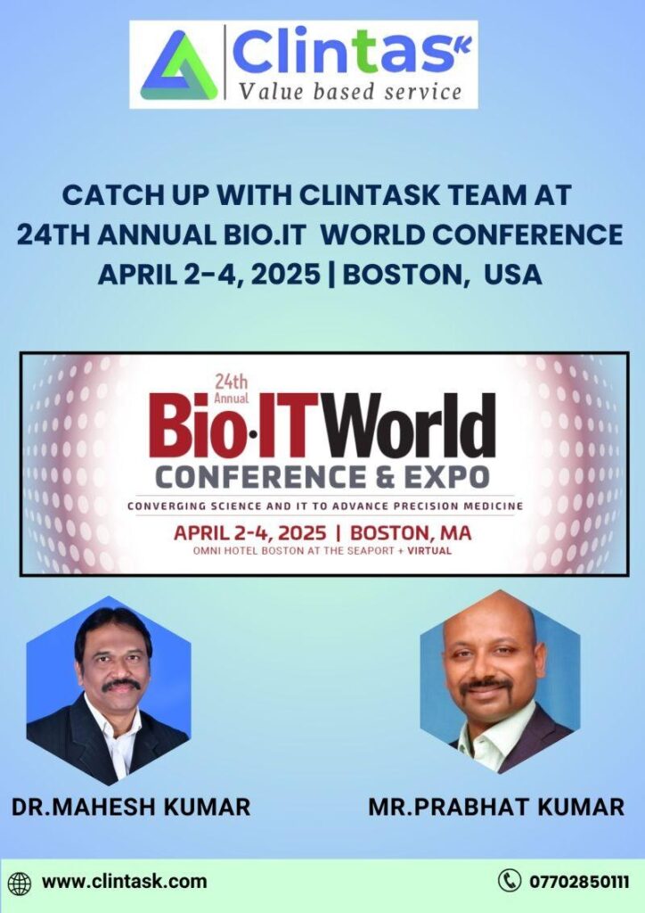 Clintask Solutions at Bio-IT World 2025 | Boston, USA Clintask Solutions at Bio-IT World 2025 | Boston, USA Clintask Solutions is set to engage in high-impact dialogues at the 24th Annual Bio-IT World Conference & Expo from April 2-4, 2025 in Boston, USA. This premier gathering unites scientific ingenuity and technological evolution, shaping the next […]
